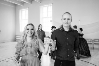 - Harjoitukset ovat ilmaiset, etkä tarvitse erityisiä varusteita tai historiallisia vaatteita. Tavalliset arkivaatteet, joissa on mukava liikkua, sopivat tanssimiseen mainiosti. Aikaisempaa tanssikokemusta tai omaa tanssiparia ei myöskään tarvita ja mukaan voi tulla milloin tahansa!